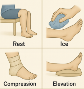 After the acute phase (RICE – Rest / Ice / Compression / Elevation), several approaches promote ligament healing: