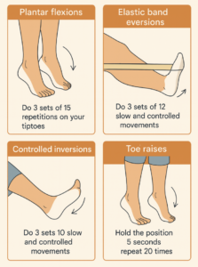 - Plantar flexions: Perform 3 sets of 15 repetitions on tiptoes