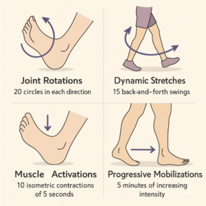 - Mobilizations / Progressive walking: 5 minutes of increasing intensity